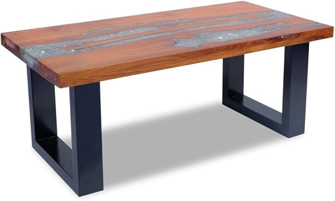 SKM Artisan Coffee Table – Teak & Resin Fusion with Solid Mango Wood Base, Multicolor Modern Design (39.4″ x 19.7″ x 15.7″)